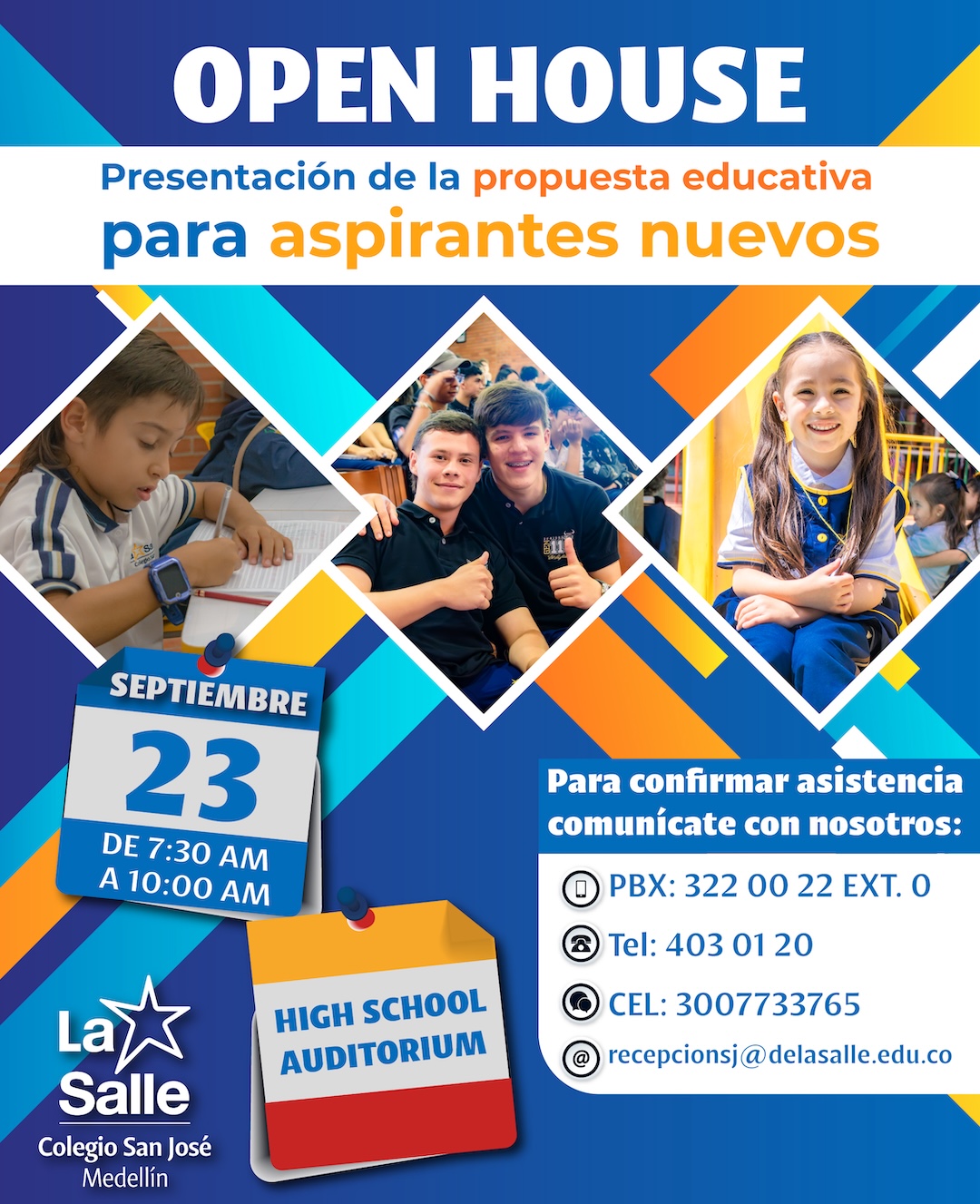 Inscríbete ahora para asistir al Open House del Colegio San José De La Salle Medellín el próximo 23 de Septiembre y conoce de cerca nuestra propuesta educativa, instalaciones y valores que nos hacen diferentes.